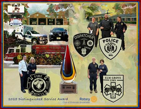 Each year the Elmbrook Rotary Club recognizes a Businessperson of the Year for their community support. A Distinguisher Service Award is presented to an Elmbrook School Board member, plus a member from the Elm Grove Police, Fire, EMS, and Dispatch The Club also recognizes a member from the City of Brookfield Police and Fire departments.