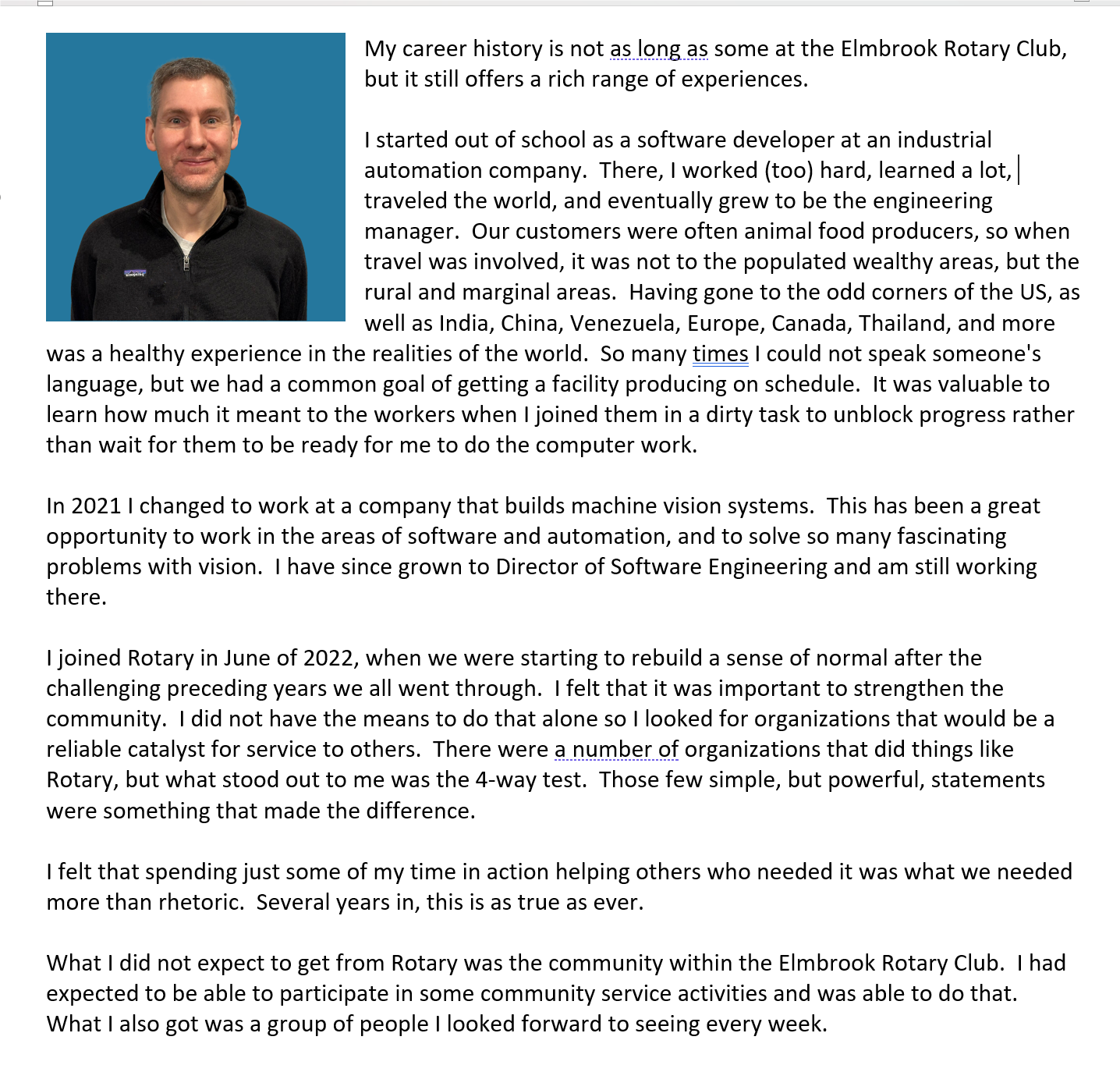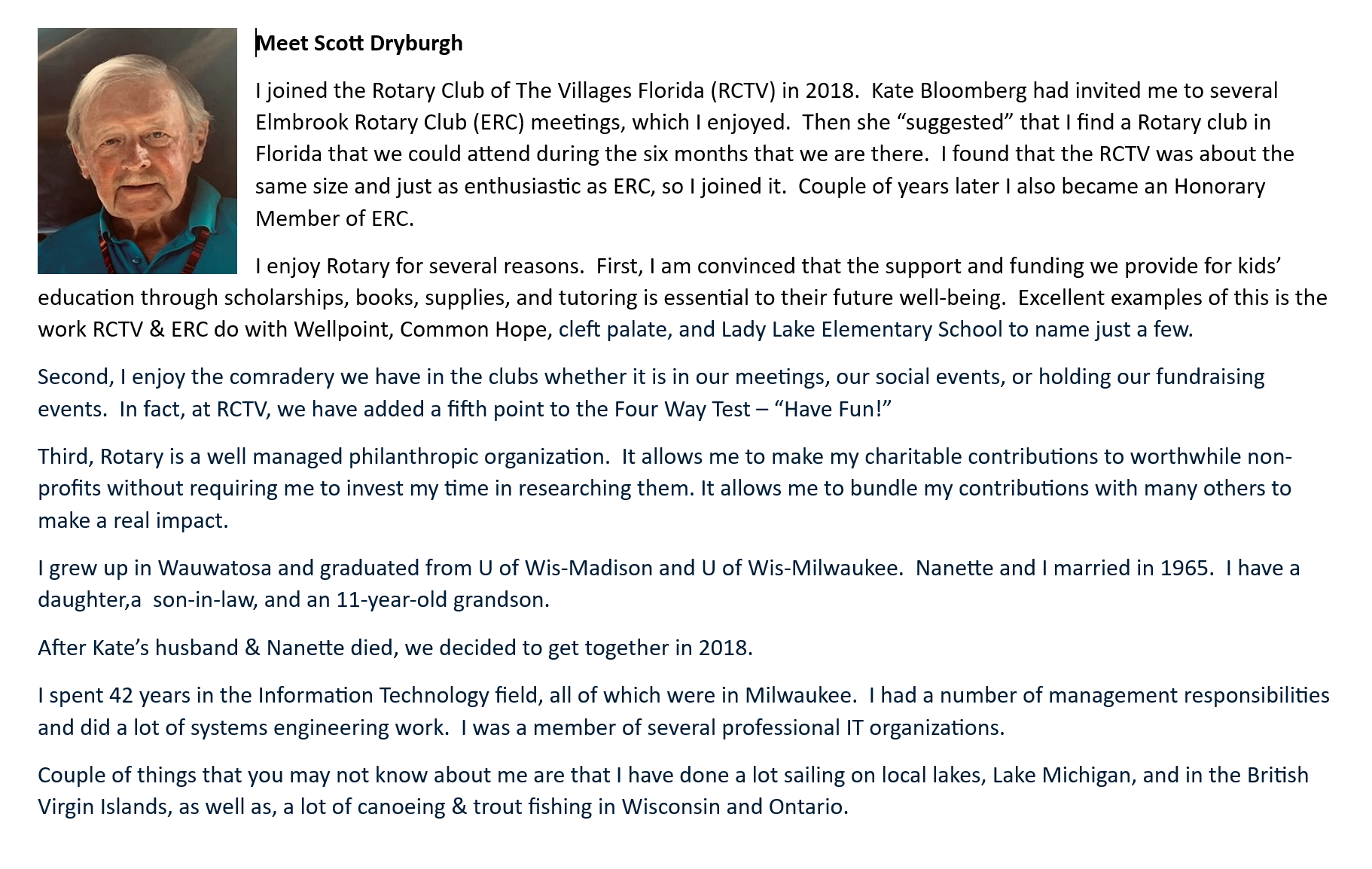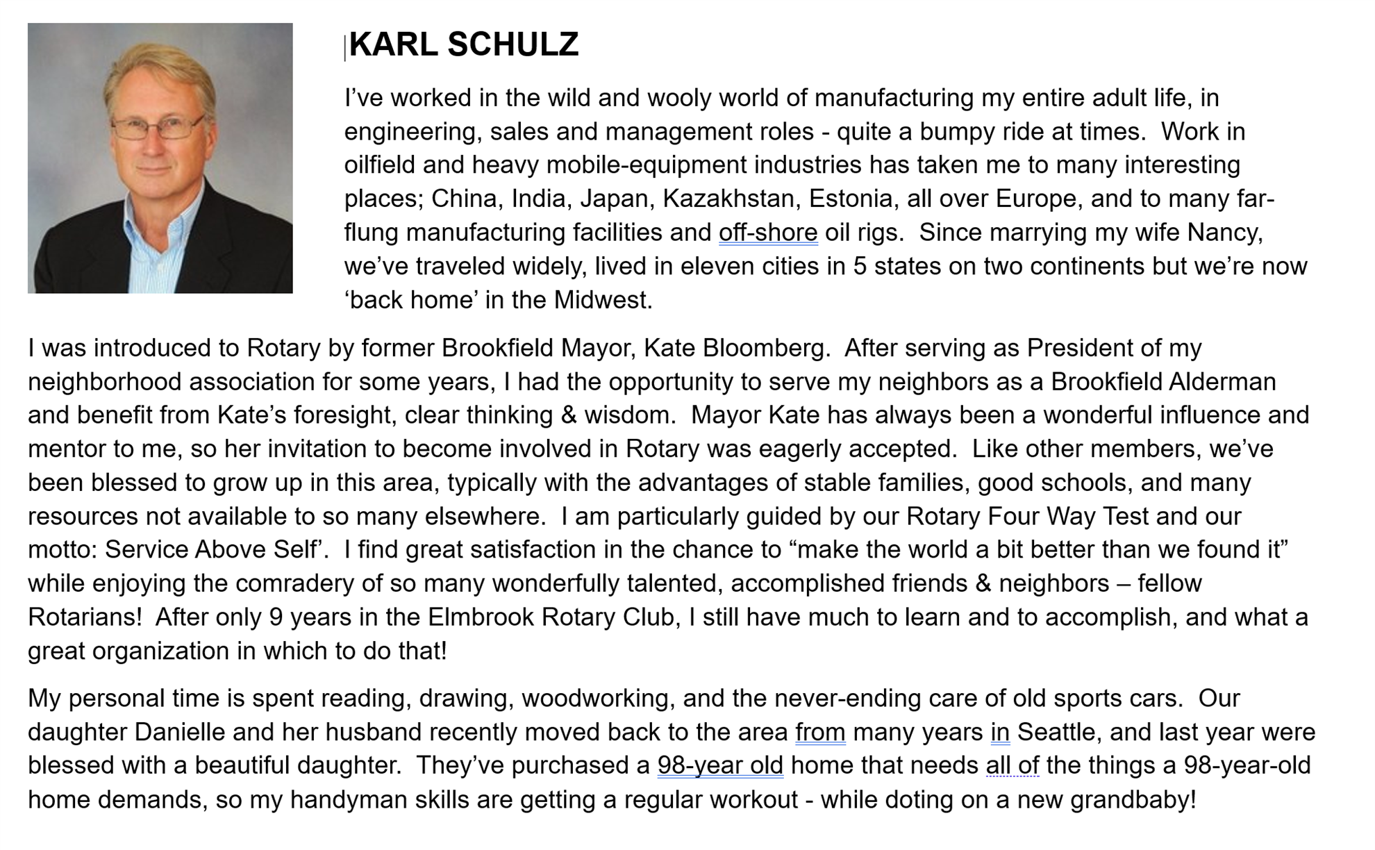 Members join Rotary for various reasons with a primary focus on “Service Above Self”. We serve local non-profit organizations, and community/ international needs through our community service projects, mini-grant funding, as well as, International Rotary projects. To view the entire bio... click on the bio.