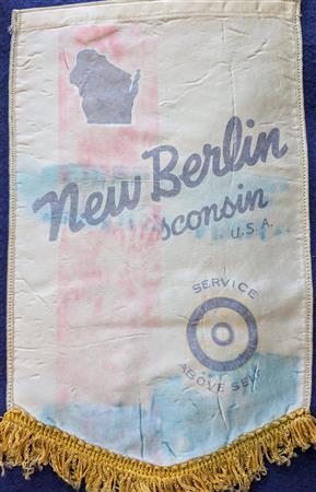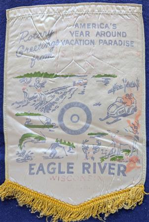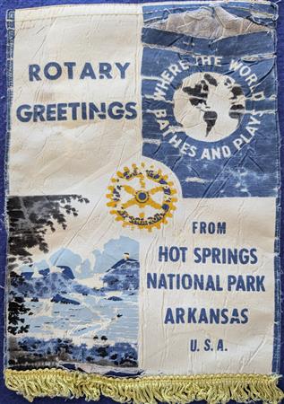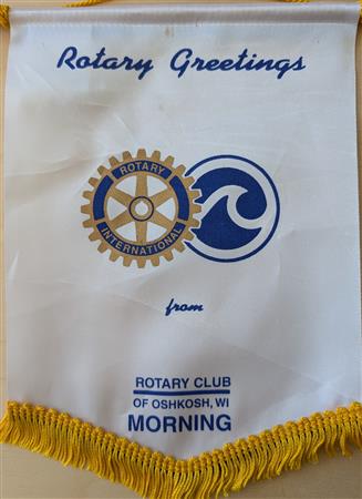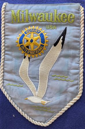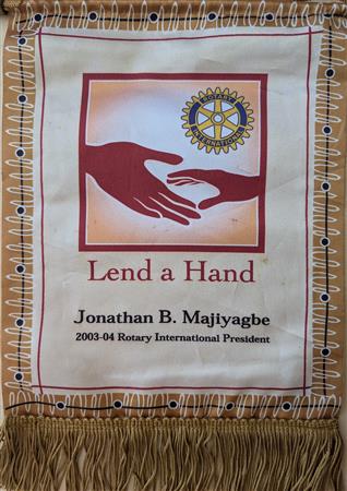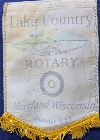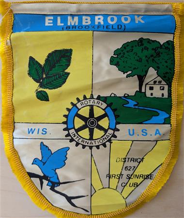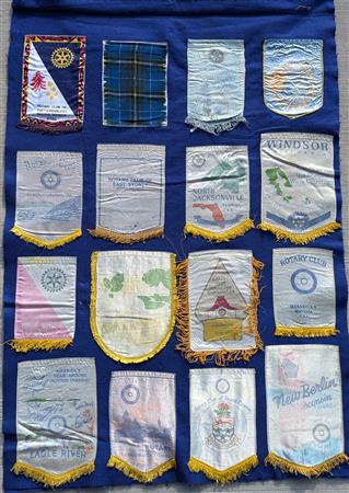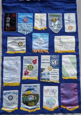 A collection of banners collected by the Elmbrook Rotary Club over the years.