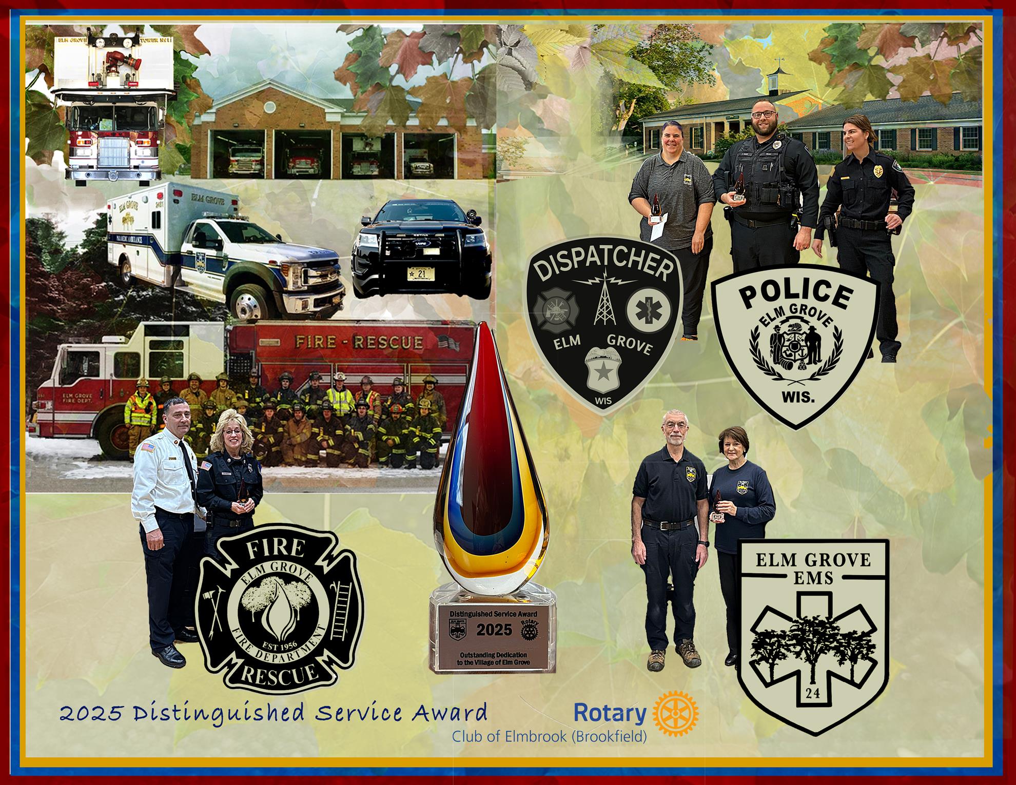 Distinguished Service Award - Village of Elm Grove![]() by Shawn Wurtzbacher The Elm Grove Police, Fire, EMS, and Dispatch Departments recently recognized a member of their team with the “2025 Distinguished Service Award” sponsored by the Elmbrook Rotary Club. The award honors outstanding service and dedication to the Village of Elm Grove. Below are recipients of this year’s award and recognition from the department: Officer Alexander Hockett – Elm Grove Police Department Dispatcher Wendy Priest – Elm Grove Dispatch Department “Through Officer Hockett’s and Dispatcher Priest’s active participation in community-based programs and their consistent willingness to assume additional responsibilities within the department, they have demonstrated exceptional dedication to public service. Their selection for this recognition reflects their unwavering commitment to the Elm Grove community and their outstanding contribution to advancing the department’s mission.” Firefighter Claudia Roedl – Elm Grove Fire Department “Claudia was chosen by department officers in recognition of her outstanding dedication, professionalism, and commitment to service. Over the past year, she responded to more than 90% of department calls and training sessions – a testament to her reliability and strong work ethic. Known for her energetic, positive attitude, Roedl consistently demonstrates a level of enthusiasm and teamwork that strengthens the department and sets a high standard for others. Claudia embodies the values and spirit every department strives for in its members. Her dedication and positive presence make a meaningful impact on our team and the community we serve.” Paramedic Sonia Stowe – Elm Grove EMS Department “Sonia joined us as a volunteer in 1993 as a driver and then as an EMT. She was a member of the first class from Elm Grove to complete Paramedic training, which allowed the village to become relicensed by the state of Wisconsin as a paramedic-level community. She became licensed as a Tactical Emergency Medic in 2011 and licensed as a Critical Care Paramedic in 2015. She has been a member of the administrative team of our EMS service for decades and is the backbone of the service. For several years, she was one of the top two members in the number of calls responded to. We honor her for 32 years of remarkable service to the Village of Elm Grove EMS.” The Brookfield Jaycees was the steward for this award for over twenty years. The Elmbrook Rotary Club is honored to continue this award for the City of Brookfield and the Elmbrook School District, and expand it to the Village of Elm Grove.