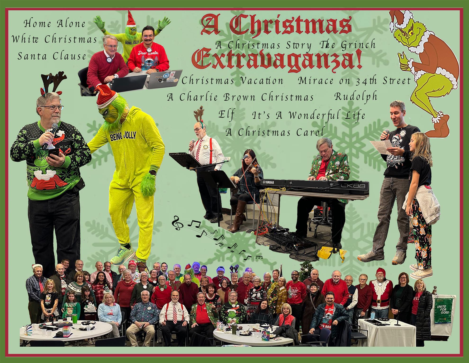Highlights from Our Last Meeting in 2014Even the arrival of Mr. Grinch couldn’t dampen the Holiday spirit that filled the room at our meeting this past Friday. We were treated to another outstanding production from our resident musical troupe consisting of Ned Consigny, Gary Gilmore and Jim Finn, otherwise known as a ConGilFin Production. They were ably assisted by the booming baritone of Joe Pottebaum as he led the Club through some spirited renditions of holiday classics. And, you know ? – we sounded pretty good!
