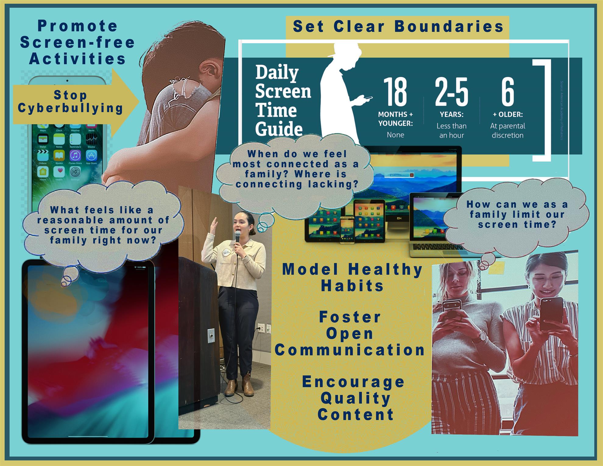The Importance of Limits on Screen Time![]() Ellie Choate, PHD, Pediatric Psychology Fellow at Children’s Hospital presented “The Importance of Limits on Screen Time” to our club members at a recent weekly meeting at St. Camillus. Her presentation is one in a series of Peacebuilding topics planned for this year. Did you know the average amount of screen time for adolescents (ages12-17): 7 to 8.5 hours per day. Adolescents with higher non-schoolwork screen time have: