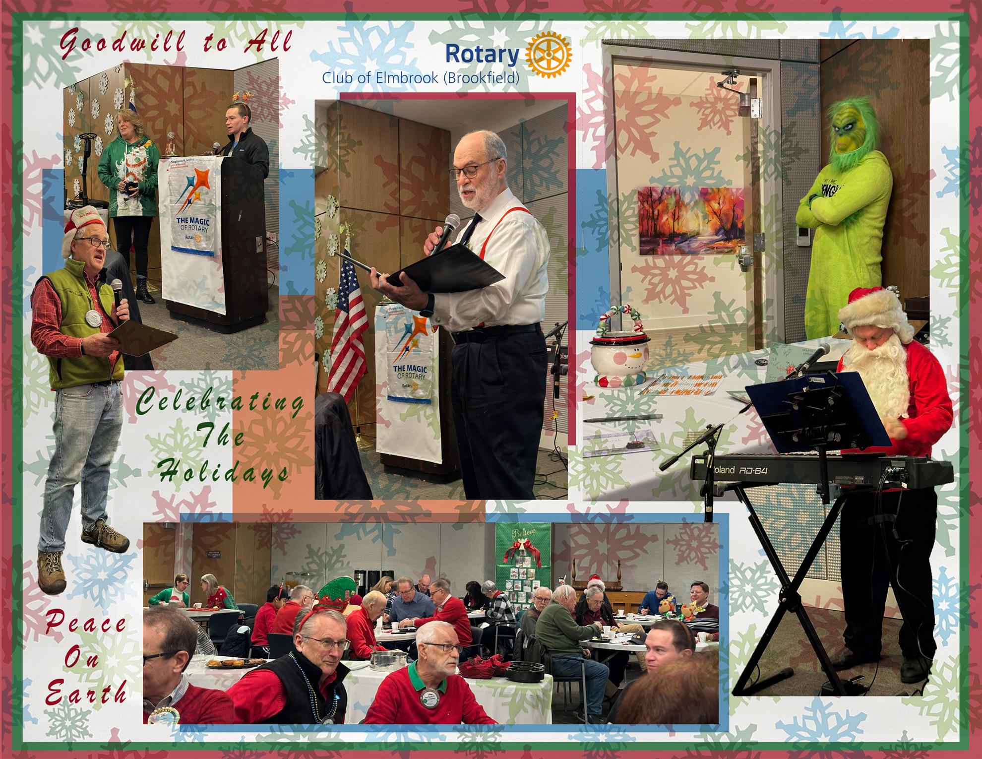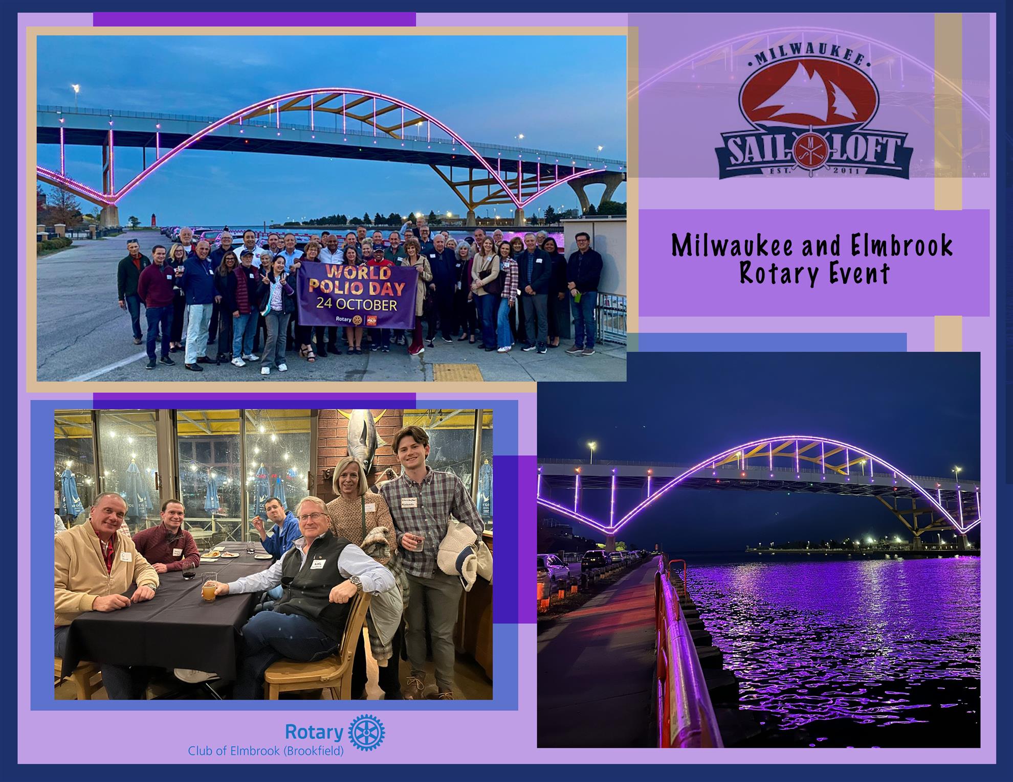 At our weekly meetings, the Elmbrook Rotary Club gathers to conduct business, share meal, and listening to engaging speakers who present a variety of interesting topics. On a monthly basis many club members gather at local venues to enjoy food and drink… in camaraderie.